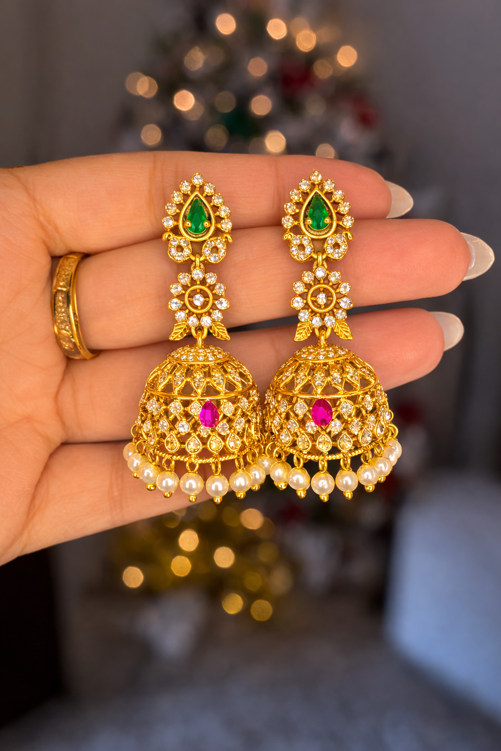 The Elegant Emerald Rani Jhumka is a masterpiece of exceptional craftsmanship, blending tradition with modern artistry. Each jhumka showcases intricate detailing, making it a standout accessory for weddings, festive events, or a touch of royalty in daily wear.